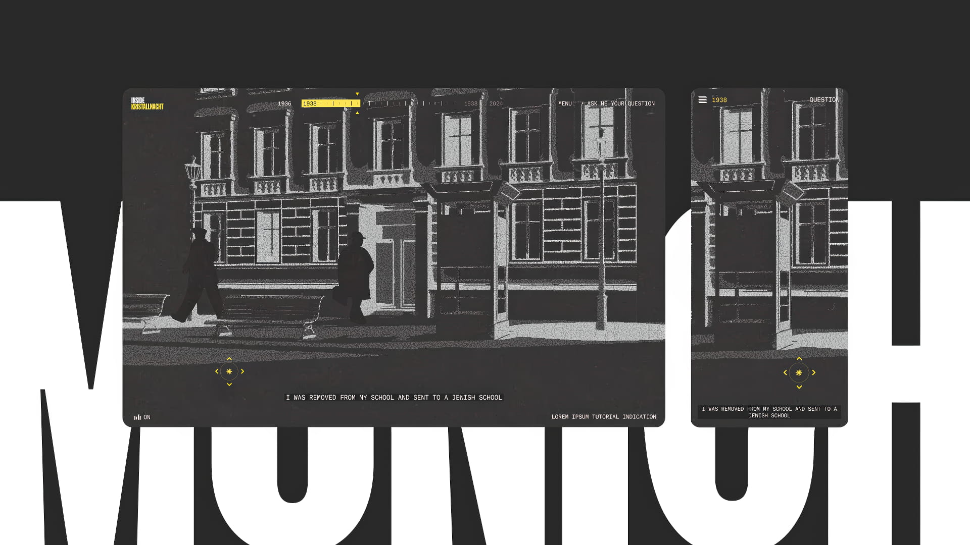 The artistic vision for "Inside Kristallnacht" was to create an immersive XR experience that not only tells a story but invites users to deeply engage with history through a visually and emotionally compelling journey. Our art direction focused on authenticity and emotional resonance, drawing from archival materials to faithfully recreate the atmosphere of 1938 Munich.