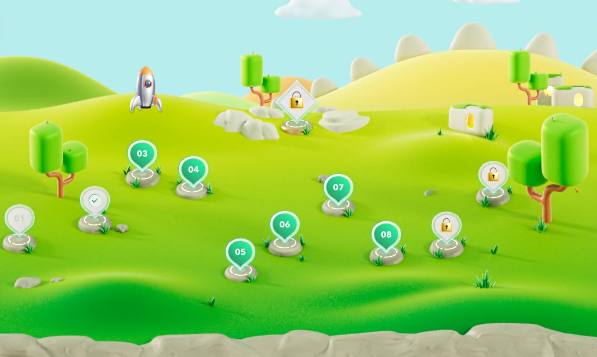 From taking the lead in the 3D Art Direction to refining the last pixels, I had the privilege of giving life to three distinct realms: Forest, Candy and Coral. The challenge was quite high, as these worlds needed to seamlessly harmonize while also evolving with the user journey throughout the website.