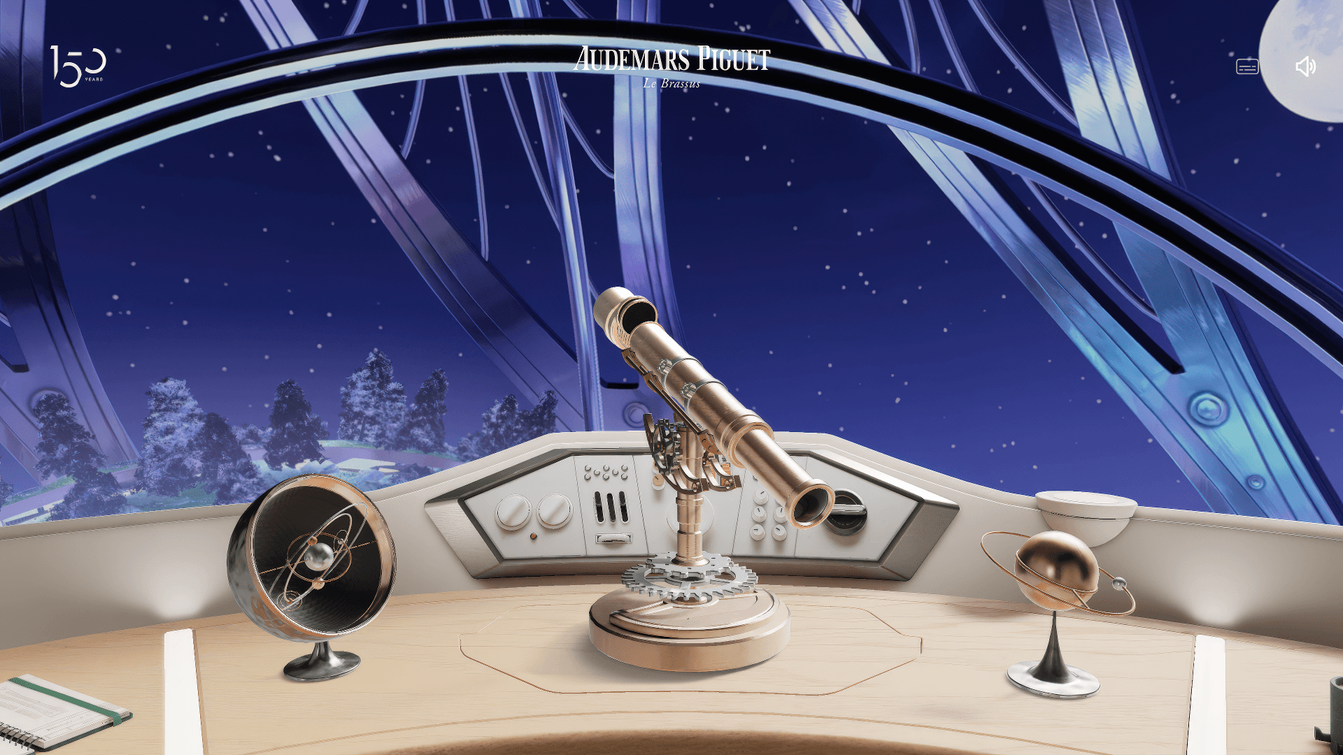To celebrate its 150th anniversary, Audemars Piguet released a series of immersive experiences. Among them, The Journey of an Idea, a poetic and intimate narrative guiding users through The Imagination Workshop, The Alchemist Forge, and The Astronomical Observatory.